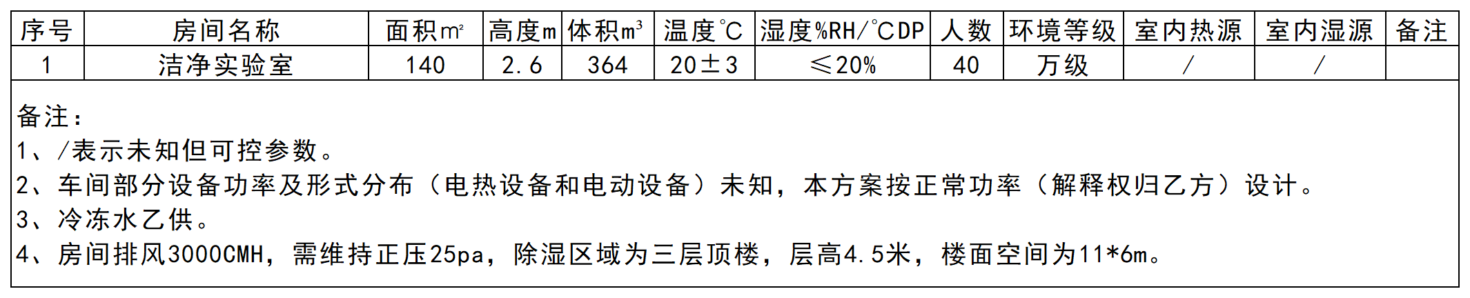 本方案除濕區域含:潔凈實驗室,基于甲供參數表及設計選型依據,設計1臺送風量10000CMH,回風量5000CMH的單轉輪除濕機組控制。